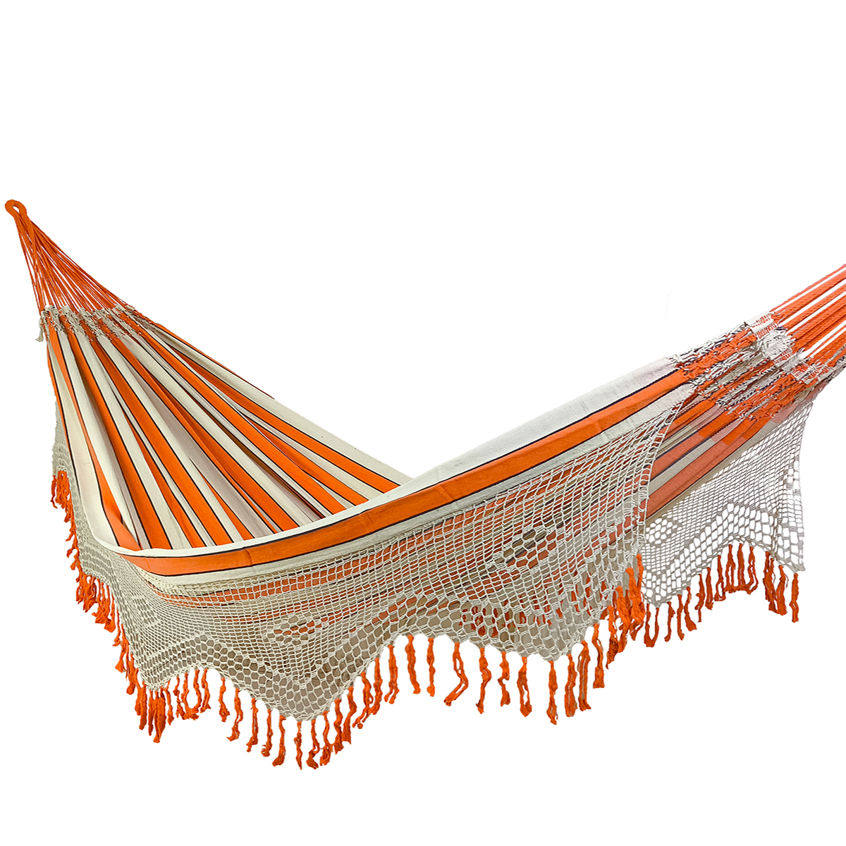 A Rede de Descanso Duquesa Crochê é confeccionada artesanalmente em fios de algodão.