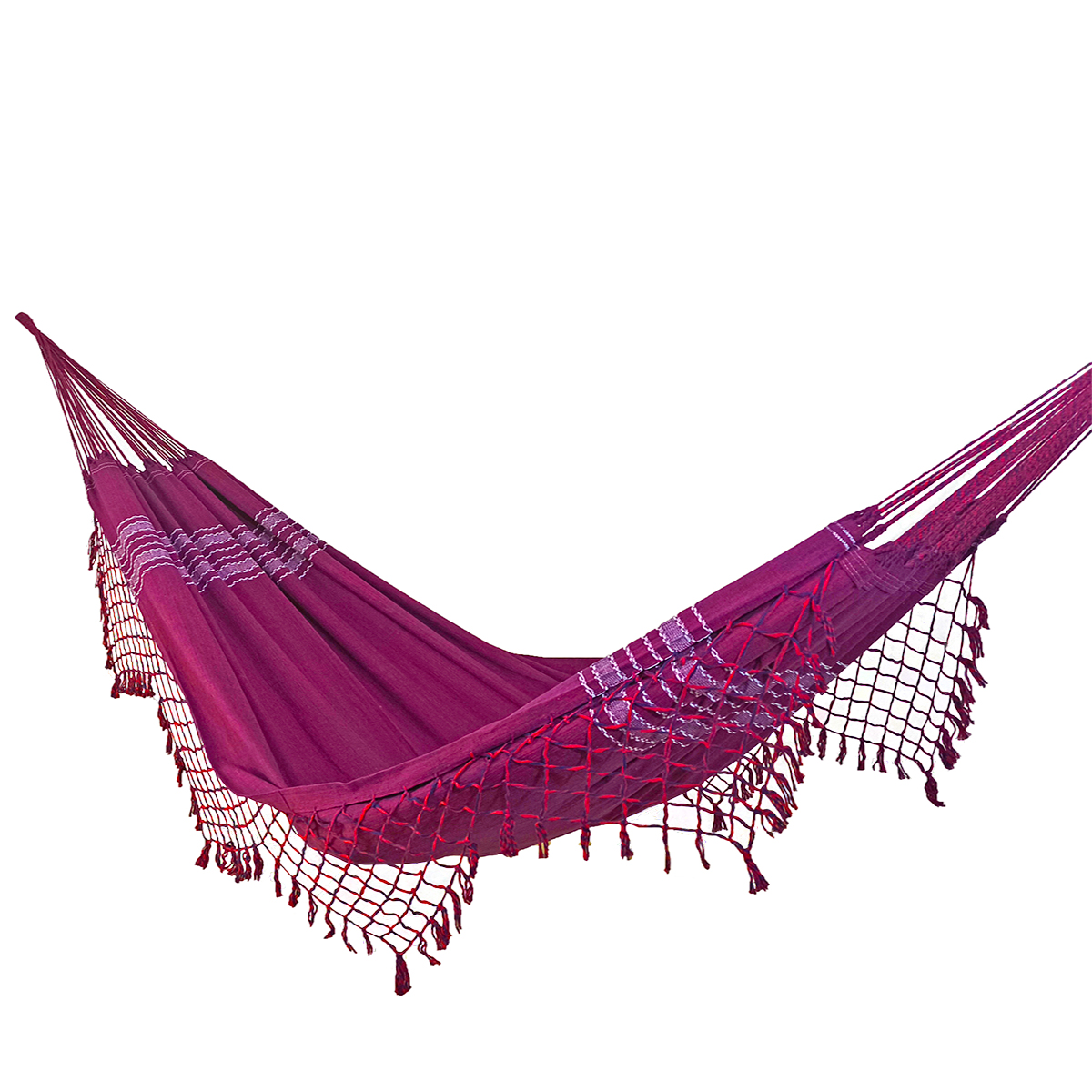 A Rede de Descanso Popular com Varanda é confeccionada artesanalmente em fios de algodão.