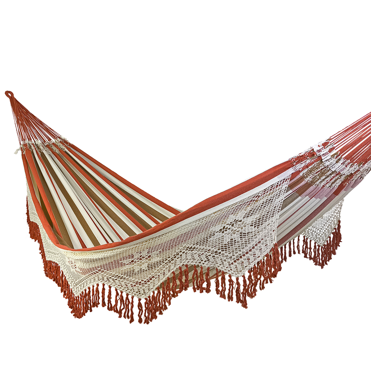 A Rede de Descanso Duquesa Crochê é confeccionada artesanalmente em fios de algodão.