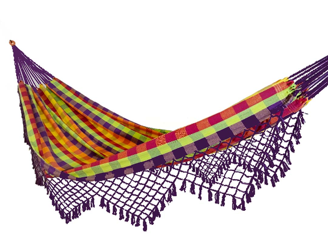 A Rede de Descanso Popular com Varanda é confeccionada artesanalmente em fios de algodão.