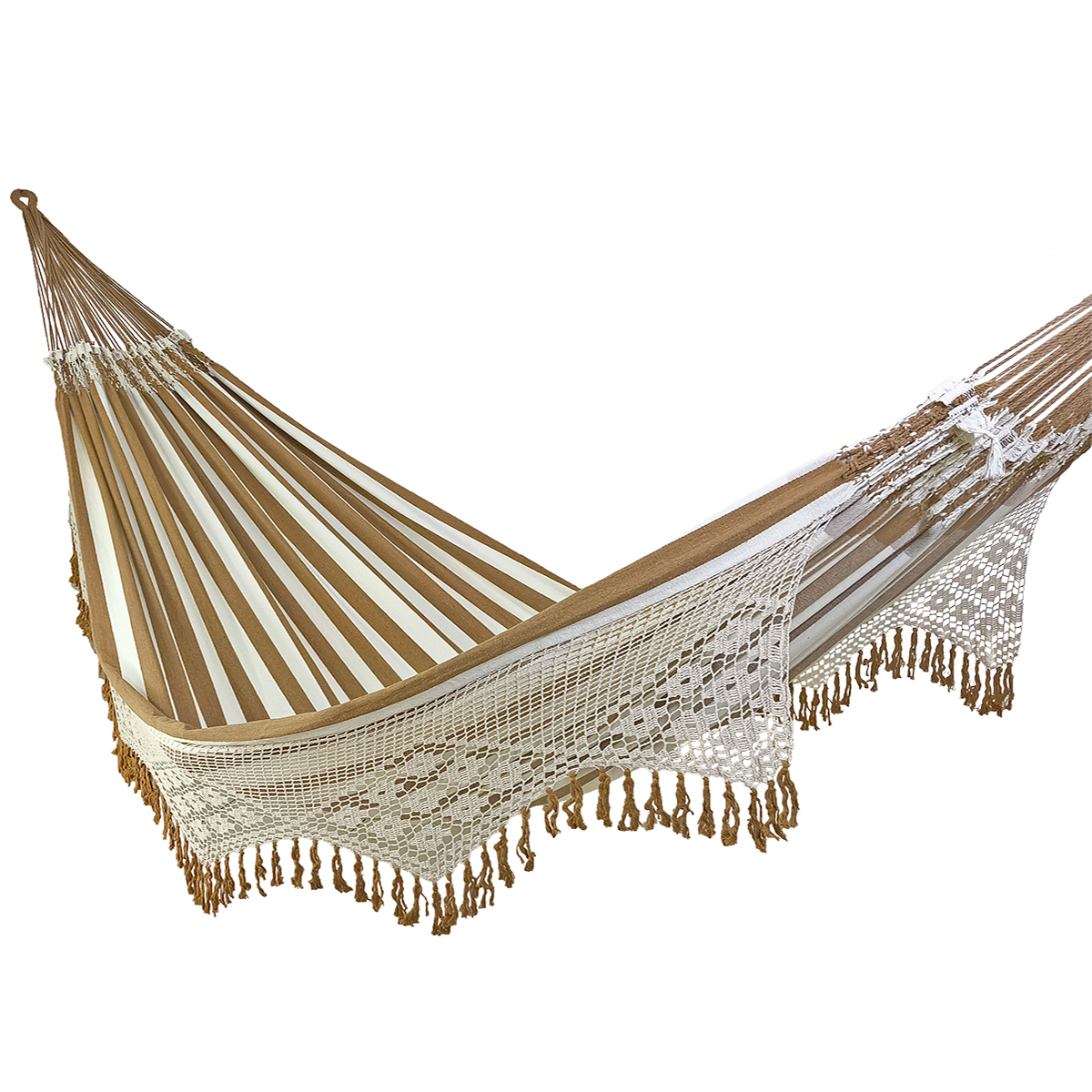 A Rede de Descanso Duquesa Crochê é confeccionada artesanalmente em fios de algodão.
